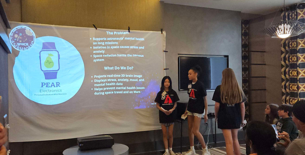 I founded PEAR Electronics, which is short for Personal Evaluation After Research. Our goal was to tackle one of space travel’s most overlooked challenges: the mental health of astronauts. Long missions can cause stress, anxiety, mood changes, and feelings of isolation. To address this, I developed a holographic watch that projects a 3D model of the wearer’s brain in real-time, tracking mood, stress levels, and cognitive function. Using this data, it offers personalized routines—like breathing exercises, adjusted sleep schedules, or specific physical activities—to help astronauts stay mentally and physically strong throughout their mission. Developing PEAR Electronics meant combining science, technology, and business strategies, while ensuring we could answer tough questions from the audience to support our design.