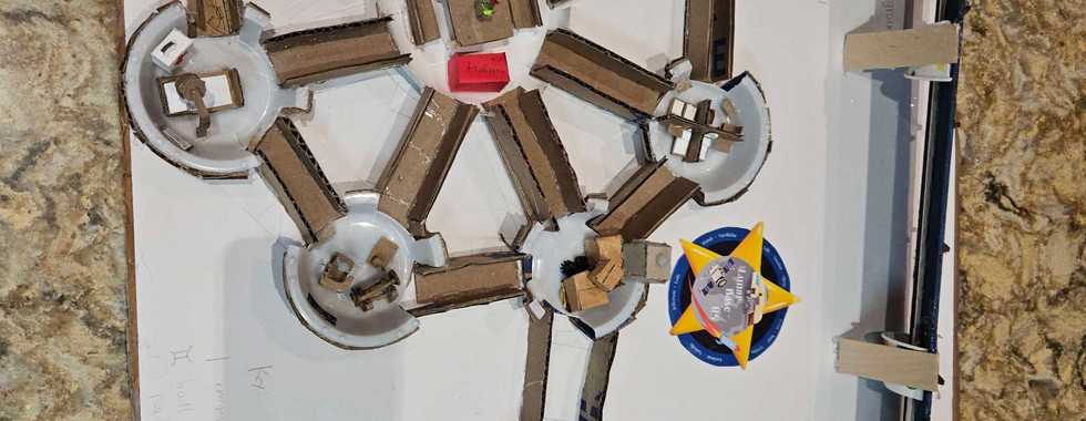Most of our week was spent working on our 3D model, which included eight beautifully detailed rooms and two laboratories. We poured our hearts and a shocking total of 132 glue sticks into this gorgeous and handmade craft. Each room had equipment and any furniture crafted from cardboard and “bolted” down with hot glue. We spent so much time working on it that, in the end, our legs went numb from being on the hard floor for so long, and my once-soft and well-taken-care-of hands are still recovering from the papercuts and hot glue burns. We were proud of the final result, despite the challenges we faced. Our final product, the 3D model, was more than a representation of our research; it was a trophy of our teamwork and dedication, demonstrating not only the complexity of lunar life support systems but also our ability to bring our visions to life.