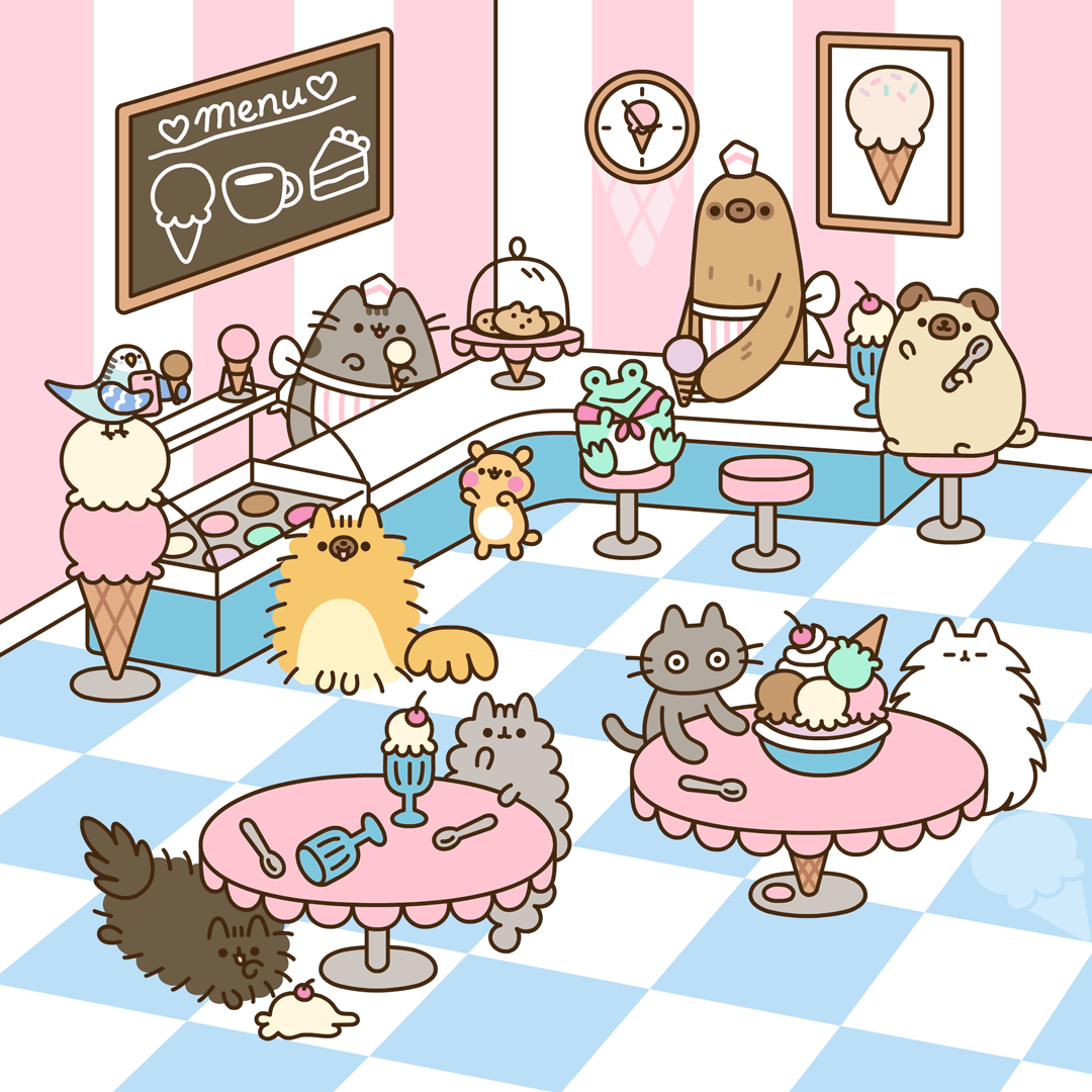 Pusheen has many friends. To learn more about, Cheek, Sloth, and Bo, the characters in Pusheen's world you can visit the website: https://pusheen.com/characters/